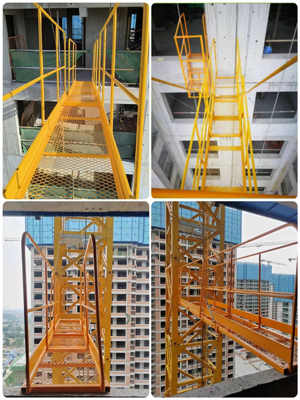 為保障塔吊在高樓層建筑作業(yè)時(shí)操作人員上下設(shè)備的安全,防止塔吊操作人員高處墜落事故的發(fā)生,順安公司技術(shù)人員前后耗費(fèi)半年時(shí)間,研發(fā)出一種新型懸掛、伸縮式塔吊司機(jī)安全通道,該安全通道直接固定在塔吊標(biāo)準(zhǔn)節(jié)上,與建筑物無(wú)任何連接,且可以隨塔吊高度增加快速安裝到需要的位置,方便操作人員上下塔吊,省時(shí)省力,快捷,且相對(duì)安全;在使用后期,外架拆除時(shí),該通道還可以伸長(zhǎng),滿足使用要求??朔藗鹘y(tǒng)通道搭設(shè)時(shí)間長(zhǎng)、安全風(fēng)險(xiǎn)高、成本高、同臺(tái)塔吊需多次搭設(shè)等缺點(diǎn),既提升了塔吊運(yùn)行的安全性和工作效率,又保障了人員和物料的安全。