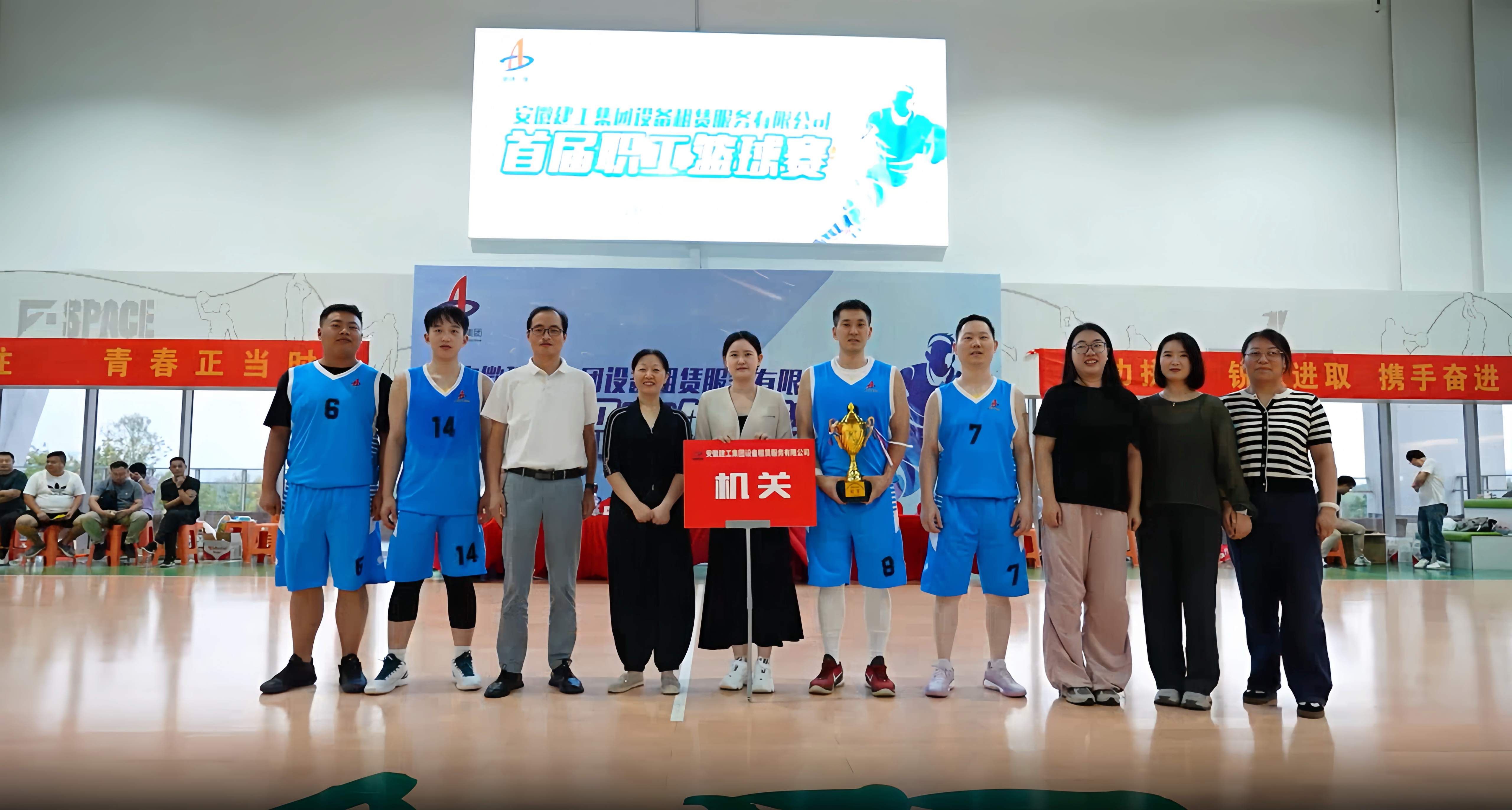 為慶祝新中國(guó)成立75周年,全面推進(jìn)職工健身活動(dòng),9月21日,建工設(shè)備租賃公司工會(huì)和團(tuán)總支在合肥駱崗公園籃球館聯(lián)合舉辦首屆職工籃球賽。集團(tuán)工會(huì)(信訪辦)副主席、主任邢應(yīng)梅應(yīng)邀出席頒獎(jiǎng)并作講話,設(shè)備租賃公司領(lǐng)導(dǎo)張?chǎng)?、朱玉出席比賽,各分子公司領(lǐng)導(dǎo)班子成員、職工代表到場(chǎng)觀看賽事。