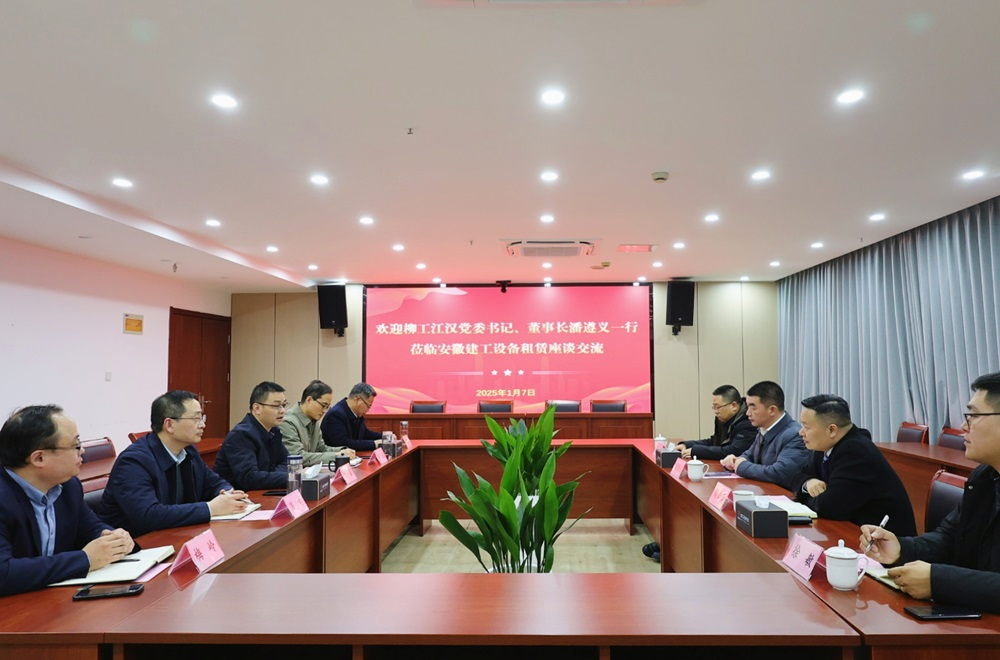 1月7日下午,柳工江漢黨委書記、董事長潘遵義一行到訪建工設(shè)備租賃,建工設(shè)備租賃黨委副書記、副總經(jīng)理張鑫熱情接待并就深化合作進行座談交流。