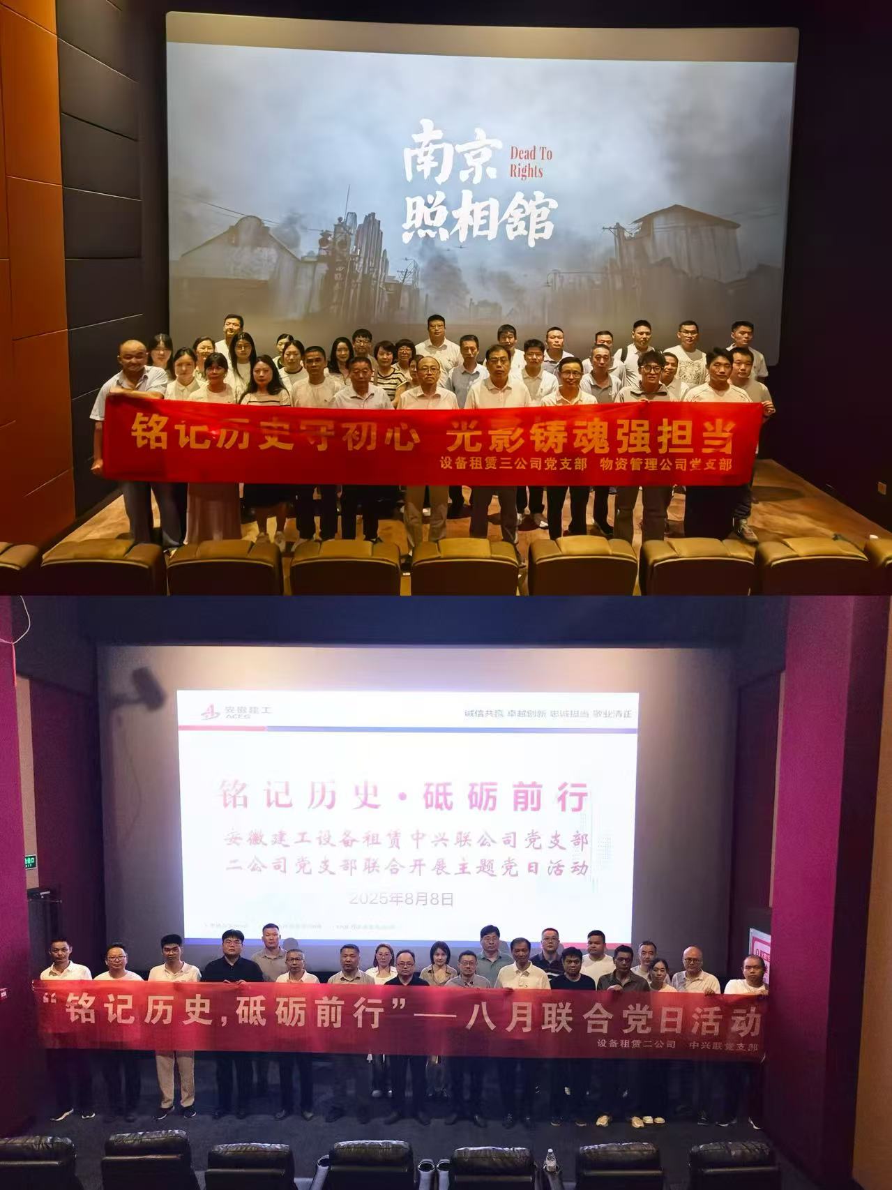 為深入學(xué)習(xí)貫徹習(xí)近平新時代中國特色社會主義思想,弘揚愛國主義精神。8月8日,建工設(shè)備租賃公司各黨支部聯(lián)合開展紅色觀影主題黨日活動,組織全體黨員、入黨積極分子等集中觀看愛國主義題材影片《南京照相館》。