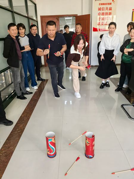 活動伊始,一項源自古代士大夫游戲的“投壺”吸引了大家的目光。員工們屏息凝神,瞄準(zhǔn)、投擲……一支支箭矢劃出弧線,每一次入壺都引來陣陣喝彩。這項活動不僅讓大家體驗了中華傳統(tǒng)禮儀游戲的雅趣,更考驗了耐心與定力,在動靜之間展現(xiàn)了職工們的專注與從容。