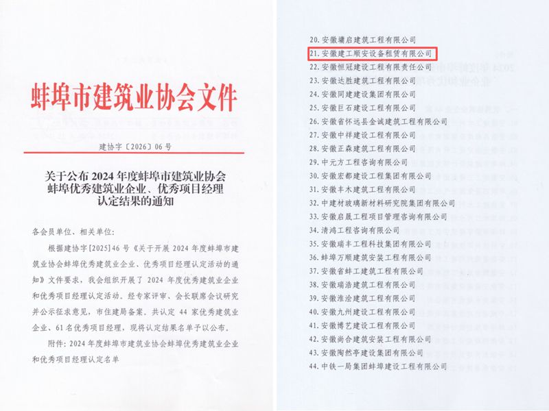 載譽(yù)前行啟新章。順安公司將以此次榮譽(yù)為新起點(diǎn),始終堅(jiān)守品質(zhì)初心,持續(xù)深化創(chuàng)新驅(qū)動,不斷提升服務(wù)效能,積極踐行國企擔(dān)當(dāng),進(jìn)一步發(fā)揮皖北建筑機(jī)械租賃行業(yè)的區(qū)域引領(lǐng)作用,奮力書寫建工設(shè)備租賃高質(zhì)量發(fā)展新篇章!